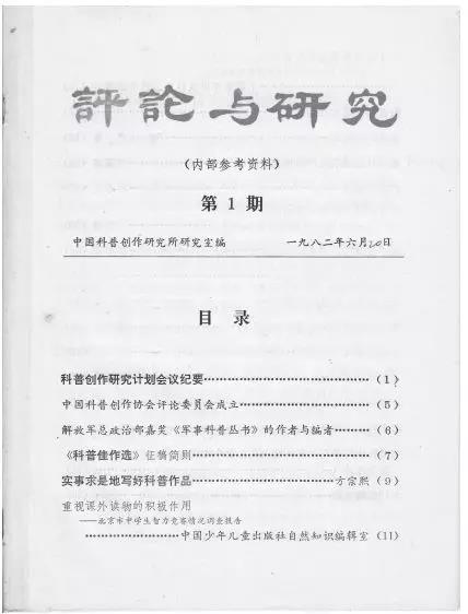 為配合中國科普作協鼓勵開展科普評論,培養科普評論人才,科普所在會上決定出版內部參考資料《評論與研究》?!对u論與研究》第1期很快就在當年6月面世,水準可嘉,其后各期也多有看點。我所見到的最后一期《評論與研究》是1986年12月出版的第10期,刊末仍有“征稿簡則”,但我不知此刊一直出到何年何時。
