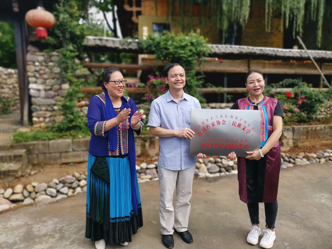 《民族文學》副主編陳亞軍為《民族文學》西昌基層創閱中心授牌(李春攝)