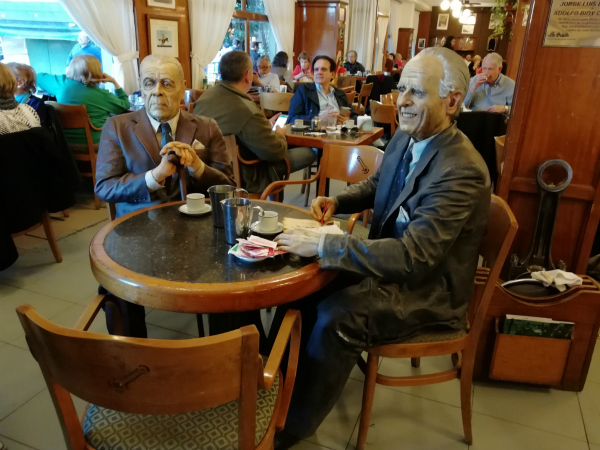 博爾赫斯和好友卡薩雷斯在餐廳的雕塑