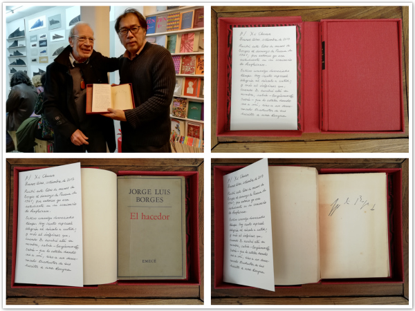 2017年9月在阿根廷布宜諾斯艾利斯,博爾赫斯學生卡洛斯.R.路易斯將博爾赫斯簽名本《創造者》一書贈與西川