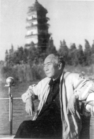一九九一年,汪曾祺在故鄉高郵的運河上