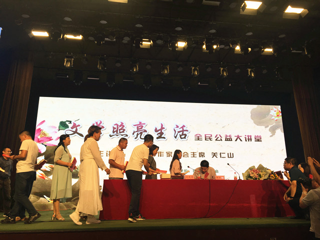 8月2日,中國作協“文學照亮生活”全民公益大講堂暨優秀文學作品誦讀會在河北省雄安新區舉行。河北省作協主席關仁山作了題為《新時代,抒寫新史詩》的主題演講,并就新時代文化工作者應有的責任擔當、創作方向等問題與現場作家和文學愛好者互動。來自雄安三縣及周邊縣市的300多名作家和文學愛好者參加活動。此次活動由中國作家協會主辦,河北省作家協會承辦,安新縣文化和旅游局、安新縣作家協會協辦。河北省作協黨組成員、副主席劉建東主持活動。
