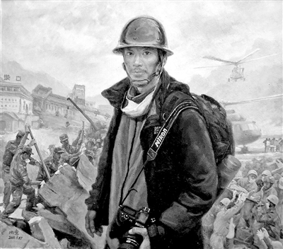我這次參展作品的最后一幅是《北青報記者在“前線”》。我畫了這么多歷史上的老報人、名記者,也應該畫新時期的年輕新聞人。所以畫了汶川大地震,北青報記者崔峻在震中映秀鎮的工作狀態。以“前線”命名還是同事楊信的提議,新聞現場之于記者,就是戰士的前線。他還和我打镲,說老焦畫了這么多新聞工作者,就最后一個還活著。
