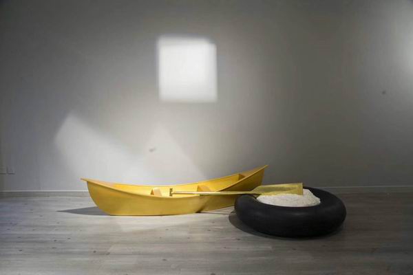 鄭嘉燕的作品《異錯鎮-酋長》,以科瓦爾祖先雕像為創作原型,將中國傳統手工藝扎染融入其中,使用不同的造型語言重塑了科瓦爾祖先雕像。馮志佳的《編織的線》、童言明的《木船、橡皮船和槳》也都對差異化的文明做出了個性化的有趣的解讀。