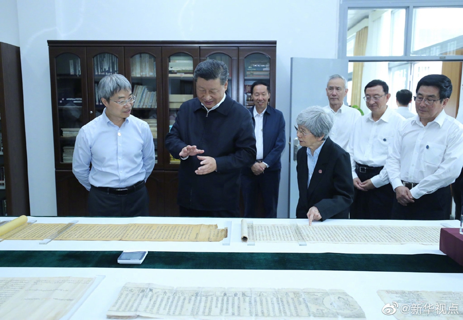 19日下午,習近平總書記在敦煌研究院同有關專家、學者和文化單位代表座談時,甘肅省文聯原副主席蘇孝林談到了《絲路花雨》《大漠敦煌》等文化作品,習近平詳細詢問演出市場的盈虧,談到中華優秀文化走出去等相關情況。他強調,傳統文化的弘揚我們要給予幫助,要保護好我們的國粹。敦煌文化展示了中華民族的文化自信,只有充滿自信的文明才能在保持自己特色的同時包容吸收各種文明成果。今天我們要鑄就中華文化新輝煌,就要以更加博大的胸懷,更加廣泛地開展同各國的文化交流,更加積極主動學習借鑒世界一切優秀文明成果。他勉勵文化工作者講好敦煌故事,講好中國故事。( 攝影記者:鞠鵬、謝環馳)