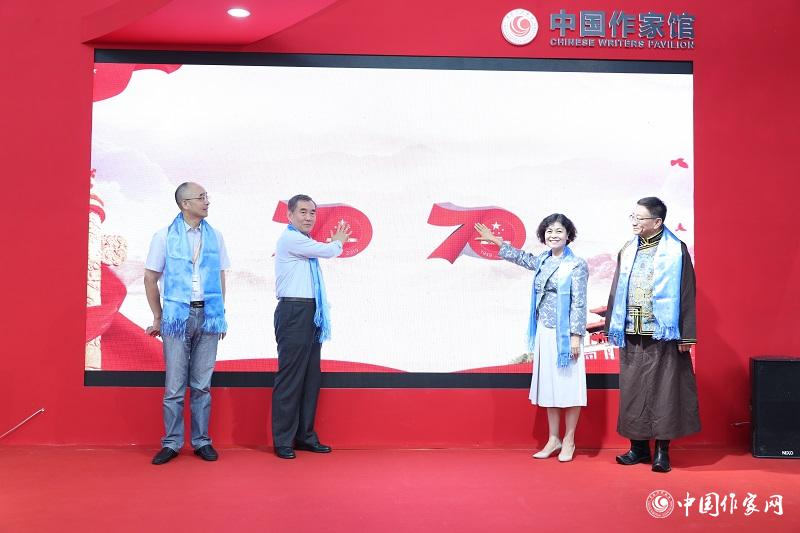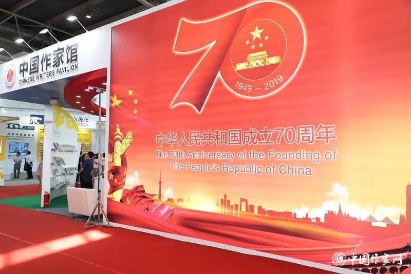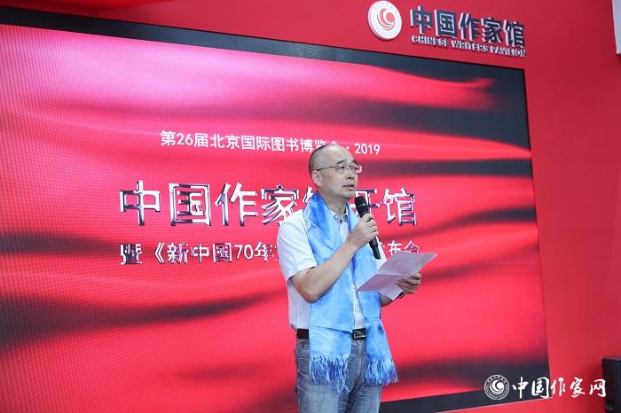 今年是新中國成立70周年,也是中國作協成立70周年。本屆“中國作家館”以“新中國文學70年”為主題。吳義勤在致辭中說,70年來,我們偉大的祖國在黨的領導下,一路披荊斬棘、乘風破浪,走向輝煌、走向復興。70年來,中國文學與新中國一路同行,與時代一同成長,不忘初心、砥礪奮進,精心描繪廣大人民的奮斗歷程,真情記錄社會主義中國發展變遷,奉獻出一批又一批文學精品,充分發揮文學藝術引領風尚、培根鑄魂的作用。特別是黨的十八大以來,在習近平新時代中國特色社會主義思想指引下,廣大作家和文學工作者堅持與時代同步伐,堅持以人民為中心,堅持以精品奉獻人民,堅持用明德引領風尚,全身心投入中國特色社會主義新時代,不斷推出精品力作,我國文學事業呈現出百花競放、蓬勃發展的繁榮景象。今年的“中國作家館”聚焦新中國文學70年,就是為了全面總結新中國催生新文學的繁榮發展歷程,全景展現中國文學從新起點邁進新時代取得的輝煌成就,并以此向不斷進步、繁榮興盛的中國文學致敬,向辛勤耕耘、潛心創作的中國作家致敬。也期待廣大讀者和文學愛好者通過“中國作家館”進一步增進對中國當代文學的了解,在閱讀文學作品的過程中獲得前行的信心和力量。