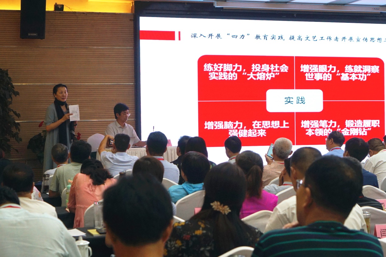 培訓期間,李彬以《深入開展“四力”教育實踐 努力打造文藝工作者開展思想政治工作的過硬素質》為題進行專題授課,從重視文藝宣傳工作是我們黨一以貫之的優良傳統、增強“四力”是新時代對增強思想政治工作的熱切呼喚、新時代增強“四力”的本質要求、新時代增強“四力”的路徑四方面進行講解,深入淺出地分析,鼓勵學員們“走下去,到人民群眾中,去發現問題”,提出“經過反思、思考、組織、提煉、分析、辨別、發現問題,然后再拿出解決問題的辦法這一過程,就是踐行‘四力’的過程”。