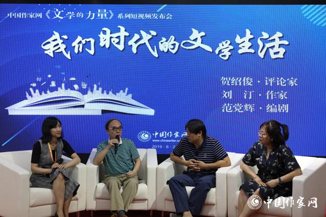 8月24日上午,由中國作家網策劃拍攝的系列短視頻《文學的力量》在第26屆北京圖博會“中國作家館”舉行發布會,并邀請評論家賀紹俊、作家劉汀和編劇范黨輝圍繞“我們時代的文學生活”進行對話,從新穎獨特的角度展示新中國文學的發展,探討當下文學現場,引起媒體和讀者濃厚的興趣。發布會由中國作家網副總編輯王婉主持。