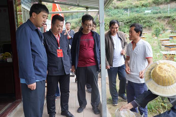 采訪團在池溝村合作社觀看當地村民釀蜜過程