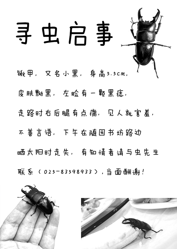 在陌生人那,朱贏椿或許是一個“怪人”。他小時候幻想自己騎著螳螂、蜘蛛在小伙伴中大搖大擺,長大后就用畫筆給蟲子們做了時裝發布會;他養的蟲子“小黑”不見了,他就在校園里貼了個《尋蟲啟示》;他發現一只蒼蠅撞窗戶死了,號召朋友圈里200人給這只蒼蠅寫挽聯,還立了一個“蒼蠅之墓”……