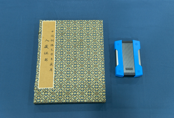 中國網絡文學專藏庫入藏證書及保存網絡文學的硬盤。