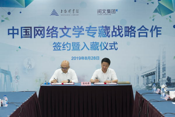 8月28日,閱文集團與上海圖書館達成網絡文學專藏戰略合作并舉辦簽約暨入藏儀式。
