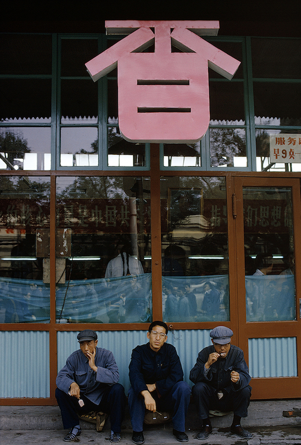 三個男人在“香”字下吃冰棍 北京,1973 年
