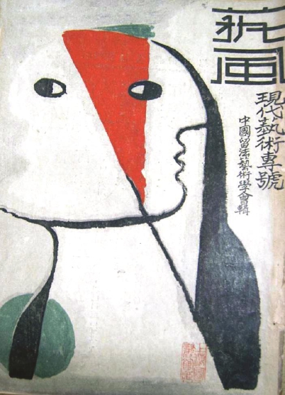 龐薰琹于1932年參加決瀾社第二屆展覽會的作品《構圖》,以幾何化處理將七位人物貫穿并分布于畫面之間,其中中央位置的人物手持手風琴,預示著某種音樂感與畫面構圖的聯系,同時在相關造型處理上隱約地結合了某種立體主義的語言元素和特征。該幅作品以同名刊于“決瀾社第二回展覽會出品”的專欄中,發表于《時代畫報》第五卷第一期,上海時代圖書公司1933年11月1日出版。在1933年同年,龐氏類似《構圖》畫面效果的另一幅作品,作為封面書衣作品,刊登于現代書局1933年8月發行的《現代》第三卷第四期中,形成了相關的視覺震撼與醒目的效果。