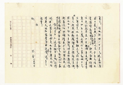 八八、七、二○一個月以后,巴老寄來了回信: