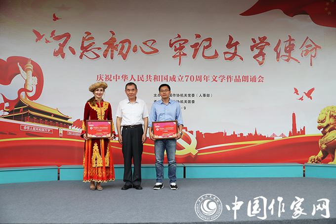 為鼓勵各單位各部門青年職工對此次活動的積極參與,活動現場舉行了頒獎儀式。經評選,魯迅文學院的民族歌舞表演《愛我中華》獲得特等獎,中國作協創聯部的合誦《寫給親愛的祖國》、民族文學雜志社的合誦《祖國》獲得一等獎,中國作協創研部的合誦《野草》題辭、中國作協辦公廳的合誦《致青年公民》《我是青年》(節選)、中國作協機關服務中心的合誦《我驕傲,我是中國人》、中國現代文學館的合誦《我的中國》、中國作家雜志社的合誦《中國的聲音》、文藝報社的合誦《祖國,我是永遠屬于你的》獲得二等獎,中國作協社聯部的合誦《狂飆》(節選)、中國作家出版集團的合誦《英雄碑頌》、詩刊社的合誦《祖國啊,我親愛的祖國》、小說選刊雜志社的合誦《我和我的祖國》、人民文學雜志社的獨誦《南海之戀》、中國作協網絡文學中心的獨誦《祖國頌》、中華文學基金會的合誦《我的祖國》獲得三等獎。