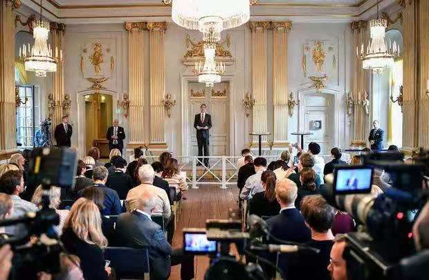 甚至那座古老的斯德哥爾摩證券交易大樓、如今的瑞典學院大樓宣布諾貝爾文學獎得主的現場內,以往的興奮和愉悅,被前所未有的靜默、沉悶取代,緊跟在獲獎者姓名后,聽眾那一聲傳統的歡呼“終于!”沒有發出,盡管這一次,是報了兩個名字的! 熱愛文學的人們的歡聚變成了謹慎而緊張的媒體見面會。