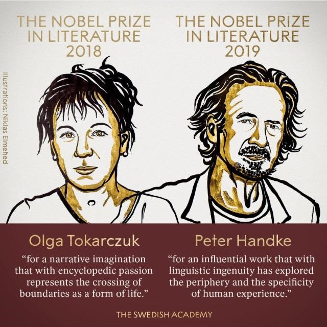 2018年諾貝爾文學獎得主波蘭女作家奧爾加· 托卡爾丘克,她的女權主義者、素食者、政治投入度高、市場讀者緣極好等標簽立刻映入人們的眼簾。尤其有文學實力,堪稱天時地利人和。在必有一位女性的確信下,奧爾加· 托卡爾丘克的名字是被多家瑞典媒體猜中了的,這在至少近十年的諾獎評選中十分罕見。雖然無法證明專家組的文化人和媒體人推動了這一結果,但至少可以猜測,他們推動了學院對國際文學市場新形勢的跟隨。托卡爾丘克被瑞典文學評論界廣泛贊賞,年長的瑞典文學界人物及普通瑞典讀者對其作品卻并不熟悉。反之,很多人對彼得·漢德克如數家珍。漢德克更被看作是文學也是上世紀八九十年代瑞典學院輝煌時代的實力派,文學成就足以讓他在十年、二十年前獲得諾貝爾文學獎,而并非今天。漢德克后來因為在前南斯拉夫問題上的政治不正確,被文學評論界以為從此和諾貝爾文學獎無緣。