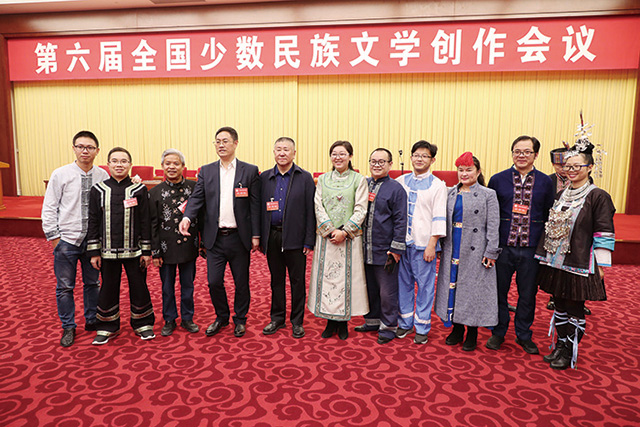 土家族作家葉梅說,中華文化從古至今是由56個民族共同構建的,新中國成立以后的文學繁榮也是由56個民族共同創造的,今后我們要以團結、創新的姿態融入時代,扎根人民,深情關注民族的進步與發展,創作出更多思想精深、藝術精湛的力作,努力攀登中國文學新的高峰。