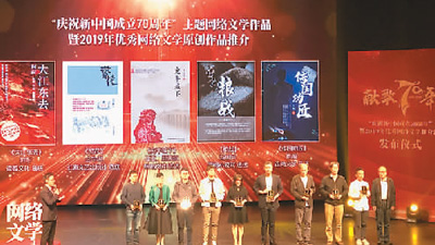 10月11日,由國家新聞出版署和中國作家協會聯合舉辦的“慶祝新中國成立70周年”暨2019年優秀網絡文學原創作品推介活動發布儀式在京舉行?!洞蠼瓥|去》《繁花》《致我們終將逝去的青春》《浩蕩》《宛平城下》《傳國功匠》等25部作品榮獲推介。