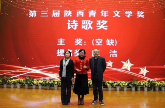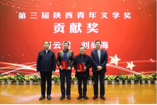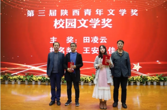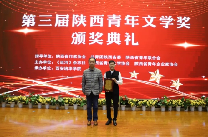 10月25日,第三屆陜西青年文學獎頒獎典禮在西安培華學院舉行。此次活動由陜西省作家協會、共青團陜西省委、陜西省青年聯合會指導,《延河》雜志社、陜西省青年文學協會、陜西省青年企業家協會主辦,西安培華學院承辦?,F場頒發了貢獻獎、中短篇小說獎、散文獎、詩歌獎、評論獎、網絡文學獎、校園文學獎等七大獎項的主獎和提名獎,肖云儒、劉尚海、楊則緯、丁小龍、馬鵬波、王潔、龐潔、韓偉、陳樸、風圣大鵬、楚清、田凌云、王安憶佳等13人獲獎。