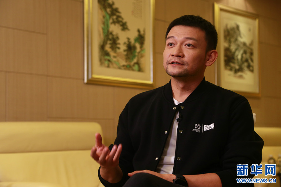 電影《流浪地球》導演郭帆接受新華網采訪。新華網 彭博攝
