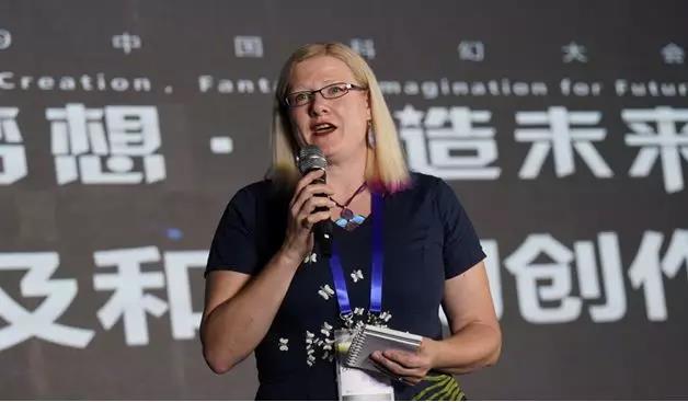 克里斯托·荷芙(Crystal Huff)女士在致辭中表示,非常高興能與中國科幻學者交流,能見到中國青少年科普科幻創作人才感到十分興奮,希望未來國際科幻界能有更多交流合作。