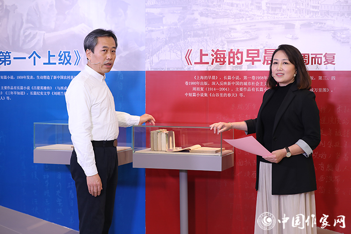 北京第二外國語學院教授、評論家李林榮(左)點評周而復的《上海的早晨》