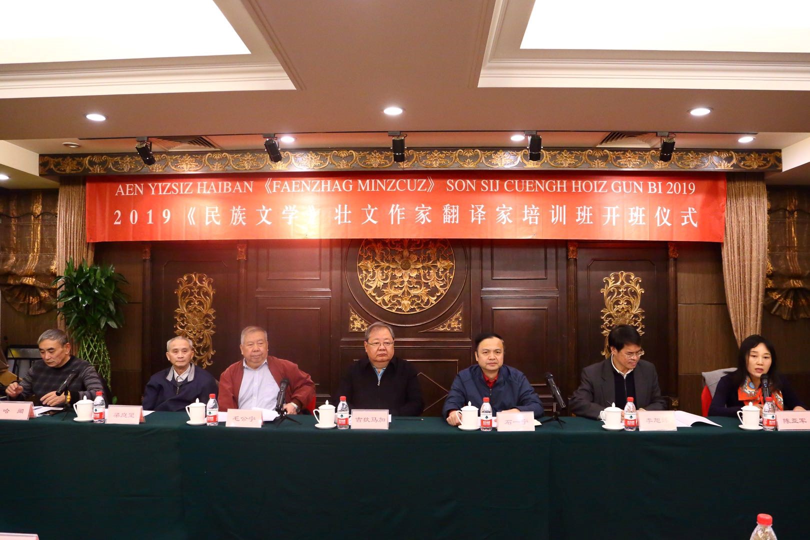 11月19日,“2019《民族文學》壯文作家翻譯家培訓班”開班儀式在京舉行。中國作協黨組成員、副主席、書記處書記吉狄馬加,《民族文學》主編石一寧,國家民委政策法規司原司長毛公寧,中央民族大學原副校長、教授梁庭望,中國民族語文翻譯局紀委書記、副局長李旭練,《民族文學》副主編哈聞等出席開班儀式。儀式由《民族文學》副主編陳亞軍主持。