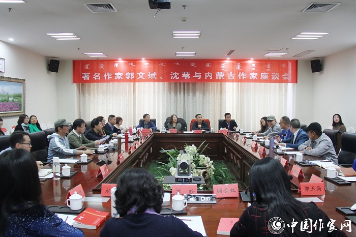 20日上午,舉行了以“新時代背景下的邊疆寫作”為議題的座談會。作家郭文斌,詩人沈葦,內蒙古文聯副主席、內蒙古作協主席滿全,內蒙古作協副主席海德才、張凱,內蒙古作協秘書長趙富榮以及內蒙古當地作家和內蒙古大學文學研究班學員共30余人參加座談。座談會由中國作協社聯部權益保護處處長李軍杰主持。與會人員圍繞少數民族作家的寫作特征、當下邊疆寫作的優勢與不足,雙語作家面臨的壓力和挑戰等議題展開交流。