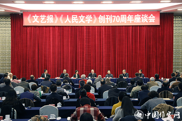 “剛剛過去的十月,全黨全國各族人民隆重慶祝了新中國成立70周年。10月31日,黨的十九屆四中全會勝利閉幕,為堅持和完善中國特色社會主義制度、推進國家治理體系和治理能力現代化提供了根本遵循。今天,我們歡聚一堂,舉行《文藝報》《人民文學》創刊70周年座談會,旨在深入學習貫徹習近平新時代中國特色社會主義思想和習近平總書記關于文藝工作的重要論述,重溫《文藝報》《人民文學》在黨的堅強領導下走過的70年崢嶸歲月,總結《文藝報》《人民文學》推動文學創作和理論批評的成功經驗,進一步團結引領廣大作家、評論家和文學工作者更加緊密團結在以習近平同志為核心的黨中央周圍,不忘初心、牢記使命,勇于擔當、守正創新,奮力開啟文學報刊事業的新篇章,為推動我國社會主義文化事業繁榮發展作出更大貢獻!”鐵凝的一席話,讓在場的作家、編輯、文藝工作者深感使命重大,職責神圣。