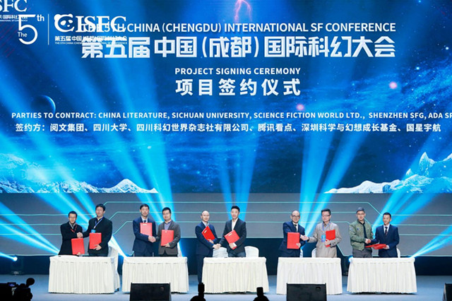 11月22日,以“多元幻想,多彩未來”為主題的第五屆中國(成都)國際科幻大會在成都召開。本次科幻盛宴為期三天,包括“2019科幻高峰會議暨亞洲科幻會議”、“銀河之夜”頒獎盛典、科幻主題系列巡展及40余場行業高峰論壇談,全面展示了以科幻文學為源頭的中國科幻產業發展現狀及未來趨勢。與往屆會議相比,本屆大會更注重科幻事業的“國際化”、“產業化”發展,邀請了來自14個國家的近60位國際嘉賓、300余位中國知名科幻作家、相關學者及產業精英共同出席。閱文集團作為此次大會的重要合作伙伴,在科幻文學培育、出版、IP運營開發等方面與會議主辦方達成深度戰略合作,同時旗下作家連續三年摘得科幻最高獎“銀河獎”桂冠,依托平臺力量進一步推動以文學為代表的科幻作品向精品化、主流化不斷邁進。