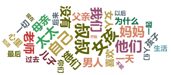 從上到下:《收獲》1979~1989、1990~1999、2000~2009、2010~2018小說高頻詞統計結果