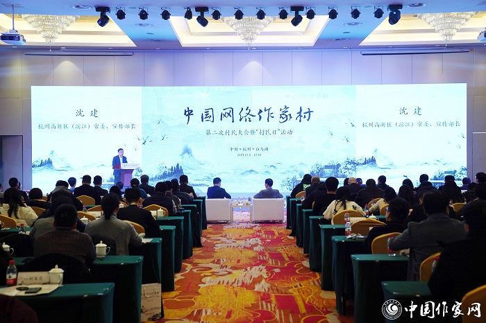 12月9日,由杭州高新區(濱江)宣傳部、區文創發展中心、杭州白馬湖生態創意城管委會主辦的中國網絡作家村第二次村民大會暨“村民日”活動在杭州舉行。中國作協網絡文學委員會主任、中國網絡作家村名譽村長陳崎嶸,中國作協網絡文學中心主任何弘,浙江省作協黨組書記、副主席臧軍,浙江省作協黨組副書記曹啟文,杭州市委宣傳部副部長應雪林,杭州市文聯黨組書記汪華瑛,杭州高新區(濱江)區委副書記李志龍出席開幕式,中國作協網絡文學中心研究員肖驚鴻,知名網絡文學作家、中國網絡作家村村長唐家三少,以及來自全國各地的網絡作家、中國網絡作家村戰略合作單位、網絡文學相關產業代表、“首屆在杭大學生網絡小說大賽”獲獎者共200多人參加活動。開幕式由杭州高新區(濱江)常委、宣傳部長沈建主持。