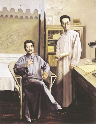 畫家石良作品《友誼(魯迅與瞿秋白)》