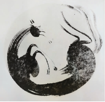 這次,我作為上世紀60年代出生的藝術家,參展3幅水墨作品。其中兩幅是我的“方圓”系列,以古人“天圓地方”的宇宙觀念、哲學思想與馬的圖式構成,表現我對馬這一生命形態的感悟和思考: 《方·蓄勢》是我對能量狀態的隱喻,也是我對民族和故鄉未來的期許;《圓·滾塵》本是馬的一個古典意象,而我以圓的構圖,試圖強調宇宙萬物中自由與歡樂的可貴,讓我們以樂觀的姿態面對一切。著名作曲家烏蘭托嘎看了這幅作品,認為它更像是一個嬰兒在母體中的掙脫,一個新生命的孕育和誕生前的陣痛,這是令我驚喜的一種解讀。 《駿骨圖》是我三年前的作品,以一匹瘦馬與背景淡墨的書寫,探討了士大夫與國家的關系和責任,即“瘠一身而肥一國”還是“肥一己而瘠萬民”的兩種不同的價值取向和人生追求。