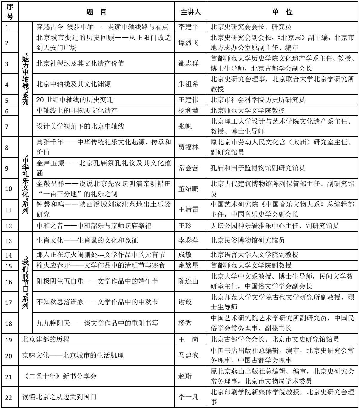 附:2020年“首圖講壇?鄉土課堂”北京歷史文化科普講座計劃一覽表