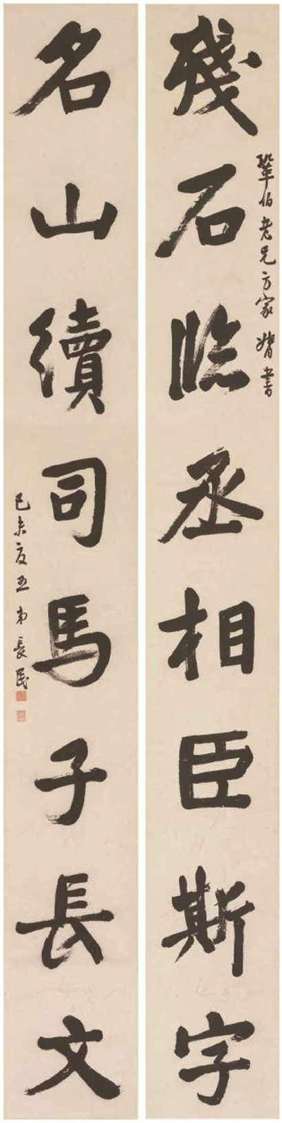 再如此冊所收林長民的書法作品。過去學界及書法界對于林氏的書法討論不多,近年坊間疊見氏之法書,多屬大字,下筆灑落,品格不俗。此幅是他贈給金鞏北(民國北京畫壇盟主)的行書八言聯,極是精工。下筆凝重,純以中鋒行筆,如火箸畫灰,剛健質樸。在結字上,緊湊飽滿,不容懈怠。墨色變化則一任自然,凝重中時露飛白,更顯蒼勁?!笆弊制伯嬓辈?,“續”字左右錯落,“斯”、“長”略顯奇側,這些變化使整幅聯語平添些許趣味。王僧虔《筆意贊》:“書之妙道,神采為上,形質次之,兼之者方可紹于古人?!贝思蚪o人如是感覺。林長民殉難,徐志摩曾對林徽因說:“徐佛蘇挽聯,有‘沖鋒陷陣哪用書生’之句,說得真是。像林先生這樣的才學聲望,在天津賣字也過得下去,偏給郭松齡看上了,把他請去,叫太太陪了同車,一直開到前方去送命,前后半個月,活生生的一個人剩了一堆白骨,你說可怕不可怕!可惜不可惜!”高拜石《古春風樓瑣記·林長民塞上驚魂》:“提到宗孟的字,也值得一說。宗孟的書法,是由晉唐人入手的,早年寫的東西,真是美妙絕倫,中歲參了北碑的態勢,更在雅秀之中,顯出樸茂勁遒的意味;所謂‘融碑入帖’,便是這個境界??的虾W鳌稄V藝舟雙楫》,以評書家自命,曾和伊峻齋(立勛)說:‘你們福建書家,卻只有兩位……’伊峻齋以為他自己一定占了一個,那康圣人從容說:‘一個是鄭蘇庵(按即鄭孝胥),一個是林宗孟……’民國以后沈寐叟(子培)的字,風靡一時,有人把林寫的圣約翰大學校長卜舫濟的壽序來比,稱做‘書家兩雄’,因為沈培老的槎椏,算‘丑中之美’,林宗孟的字則為‘勁中之美’,確是一個天才書家,而他自己也風流自賞?!笨梢姰敃r人即有之評。