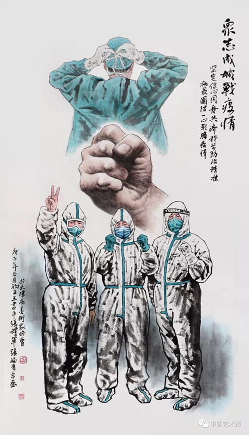 1月25日是大年初一,舉國上下抗擊新型冠狀肺炎的嚴峻形勢牽動著每個百姓的心。廣西北部灣書畫院院長陳中華拿起畫筆創作《抗擊新冠肺炎》,以表達對戰斗在一線的醫務工作者的崇敬之心。