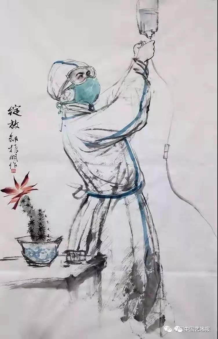 這是美術家心系戰“疫”一線的一個縮影。廣大美術家拿起手中的畫筆,一大批以抗擊疫情為主題的美術作品涌現出來,凝聚起抗擊疫情的強大精神力量。本網選發部分畫作,致敬新時代的英雄,贊美大愛精神。