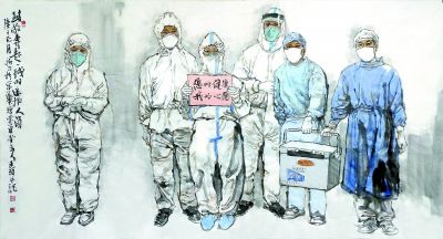 “作為畫家,畫筆就是抗擊疫情的力量,我能做的就是拿起畫筆,記錄下在抗擊疫情中涌現出的國家棟梁?!北本┟绤f會員黃華三創作的《茍利國家生死以 豈因禍福避趨之》以鐘南山院士為原型,描繪出他果敢剛毅、有風骨、有氣節、講真話、不茍且的個性,記錄下他逆風而行的勇敢身姿。他說,無論是十七年前的非典,還是今天的新型冠狀病毒肺炎,當民族遇到危難之時,總有一些有擔當、有責任的人,不畏被感染的風險,奔赴一線,以赤子之心報國,以悲憫情懷治病救人,用實際行動詮釋“茍利國家生死以,豈因禍福避趨之”的深刻內涵。