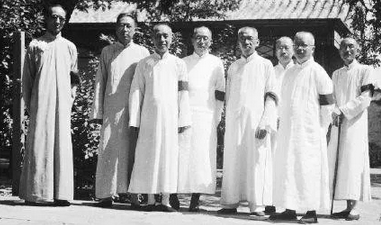 7月15日,錢玄同親自發請柬邀請親朋好友百余人到中山公園來今雨軒,為長子舉行訂婚儀式。他即興發表了熱情洋溢的講話,稱贊自由戀愛代表著時代進步,并再次大聲呼吁:“反對包辦式的婚姻!”后來,他又請黎錦熙等摯友為長子的《訂婚紀念冊》簽名留念。當天的日記中載:“六時客散盡, 我家五人加一人共攝一影, 作雄、湘訂婚之紀念兼作三強出國之紀念也?!眹y當頭,錢玄同張羅這一儀式,既為長子訂婚,又算為即將出國的三子錢三強餞行。