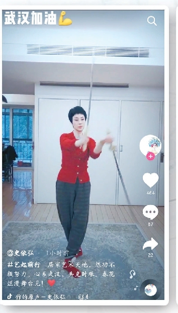 史依弘分享自己在家練功的視頻。 制圖:馮曉瑜