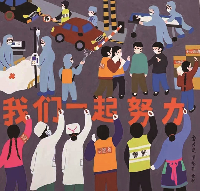 我們一起努力(金山農民畫) 金興健 周曉丹 作