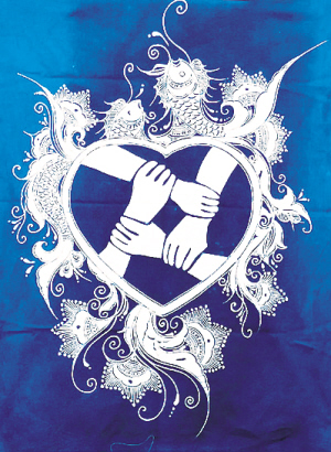 大型蠟染畫作品《戰必勝》長1.5米、寬1米,描繪了一位醫護人員的背影,一只高舉的手緊握成拳,兩邊裝飾著苗族傳統吉祥紋樣?!白髌分乇憩F抗擊疫情的鋼鐵力量?!薄丁罢帧鳖櫤米约骸烦尸F了兩只展翅高飛的吉祥鳥銜著一只口罩,意在提醒大家佩戴口罩、注意防護?!侗娭境沙?,抗擊疫情》系列作品主體圖案為四只手緊握在一顆心中,周圍裝飾著寓意吉祥的魚紋、蓮花紋和石榴紋,表現同心協力、共克時艱。