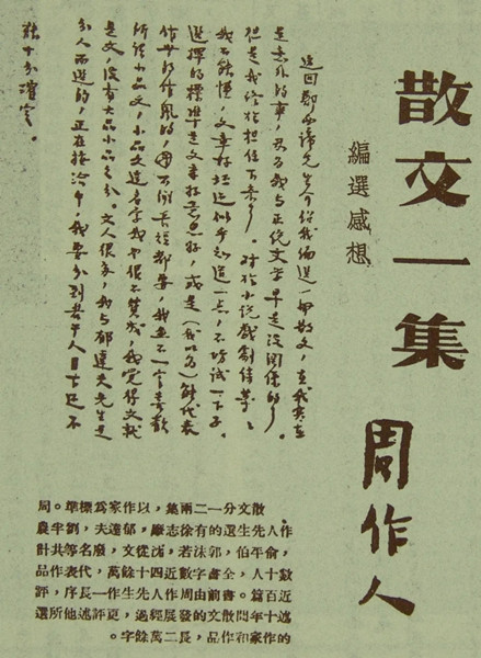 [17]參見趙家璧《編輯憶舊》172—174頁、182頁、202頁。趙家璧回憶有誤,胡適那時并非“北京大學校長”,且因其政治立場并不被政府欣賞,不可能“對審查會也許能起掩護的作用”;但要說“對一般讀者”有“號召力”,那倒是真的。至于周作人,時人并不知道他日后會在抗戰中“落水”,以他當年在文壇的地位及影響力,出任“散文一集”的編者乃求之不得,怎么會需要茅盾來為他辯解呢?
