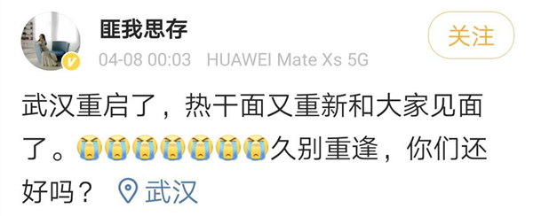 總體來講,大家還是用各種各樣的方式,盡量樂觀地度過這段特殊時期。很感謝全國各地的人們都來幫助我們,我們武漢所有人也一直在努力。我以前有點傻樂觀,中間又曾經很焦慮,現在還是非常有信心的。