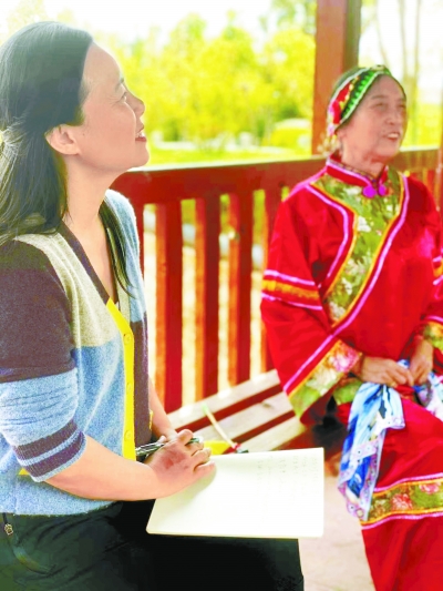 龔琳娜(左)在云南省彌渡縣傾聽傳承人唱民歌