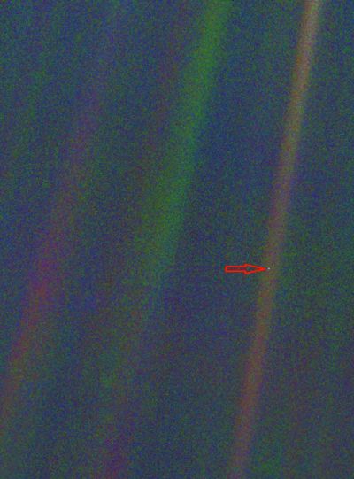 旅行者1號拍攝的太陽系中的暗淡藍點兒——地球。