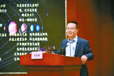 鄭永春曾多次到新疆克拉瑪依、湖北黃石、安徽六安、廣西馬山、陜西銅川、青海德令哈的大山深處,給那里的孩子們講太空里的故事,也許是因為講火星講得多,孩子們都喜歡叫他“火星叔叔”?!澳抢镉行┖⒆訌膩頉]上過科學課,他們也沒有聽說過,太空里的種種故事?!编嵱来赫f著,聲音變得低沉起來,他忘不了,那些孩子聽到太空時,眼里閃爍的光芒,“大山深處,同樣需要科學之光照耀?!编嵱来赫f,他愿意永遠做這些孩子的“火星叔叔”。